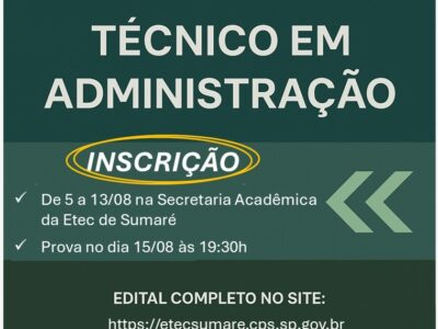 Hoje celebramos o Dia do Administrador, uma data que homenageia os profissionais e futuros profissionais que, com planejamento, organização e liderança, são capazes de transformar ideias em resultados. Na ETEC de Sumaré, reconhecemos a importância […]