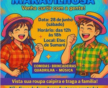 Vem pro arraiá aproveita com a gente!!! Vai ter muita comida, brincadeiras, músicas e inté quadrilha Dia 28/06/2025 – das 12h as 18h No Prédio da Etec de Sumaré Rua Rafael Rossi, 197 – Jardim […]