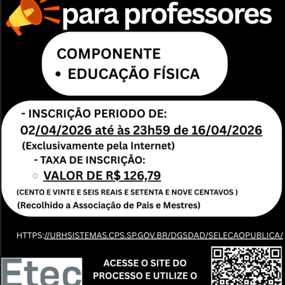 A ETEC Sumaré Cidade Orquídea está com inscrições abertas para Concurso Público de Professor nas seguintes áreas Educação Física – Ensino Médio 🗓 Período de inscrição: 26/03/2026 a 16/04/2026 🌐 Inscrições: https://urhsistemas.cps.sp.gov.br/dgsdad/selecaopublica/ Seja um transformador […]