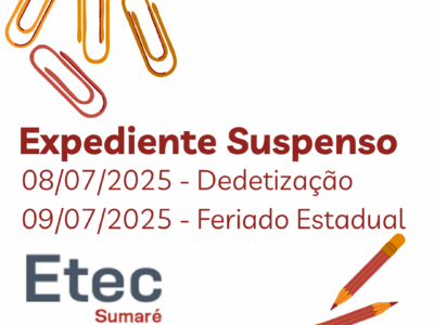 Serão realizadas online ou presencialmente na Secretaria da Etec de Sumaré (17h as 19h), SOMENTE nos dias 22 e 23/07/2024.