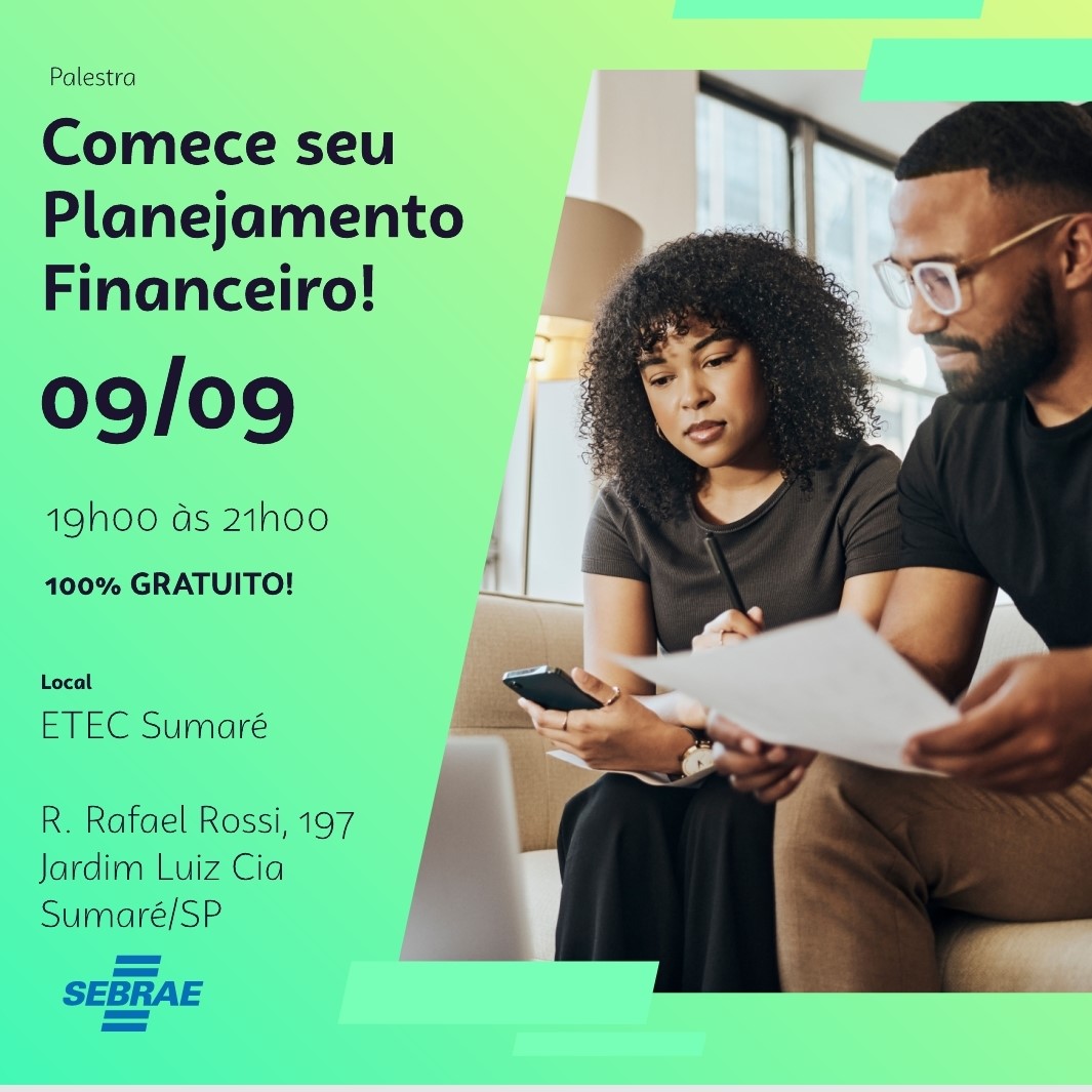 Nos dias 08 e 09 de Setembro, dentre outras atividades, a Etec de Sumaré realizou uma Palestra sobre o tema COMEÇE SEU PLANEJAMENTO FINANCEIRO, ministrada pelo SEBRAE.