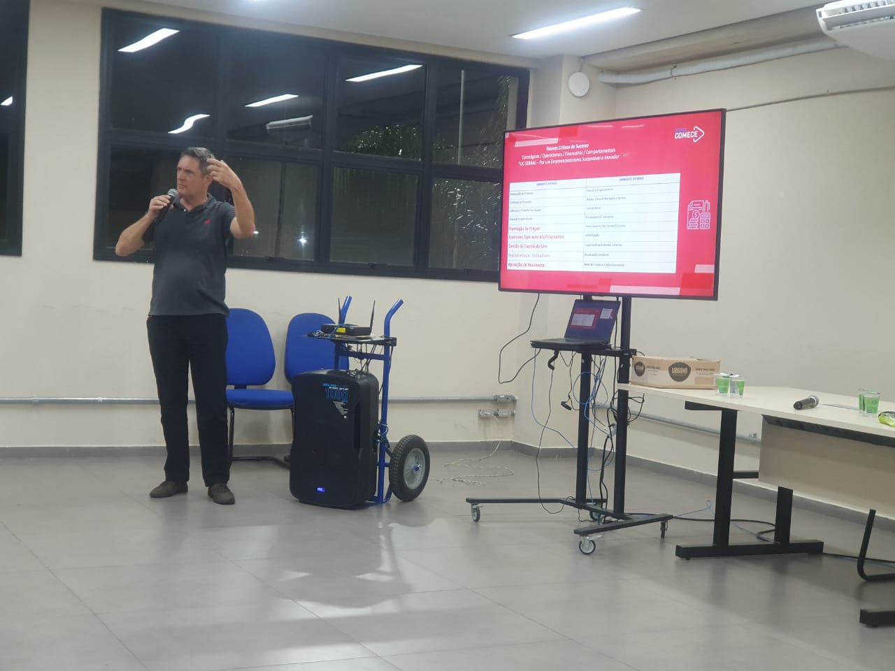 As fotos abaixo são da Palestra realizada no dia 09 de Setembro, com os alunos do Técnico em Administração Modular (noturno) e palestrante Eduardo Sene, Analista de Negócios do SEBRAE-SP. Estavam presentes também Professores e Coordenador do Curso de Técnico em Administração Modular Prof. Luis Eduardo Lacerda de Souza Lara Phenis.