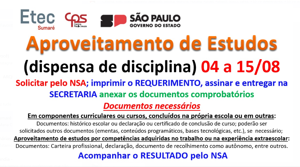 A solicitação deverá ser feita através do NSA. (Código da Etec de Sumaré: 302)