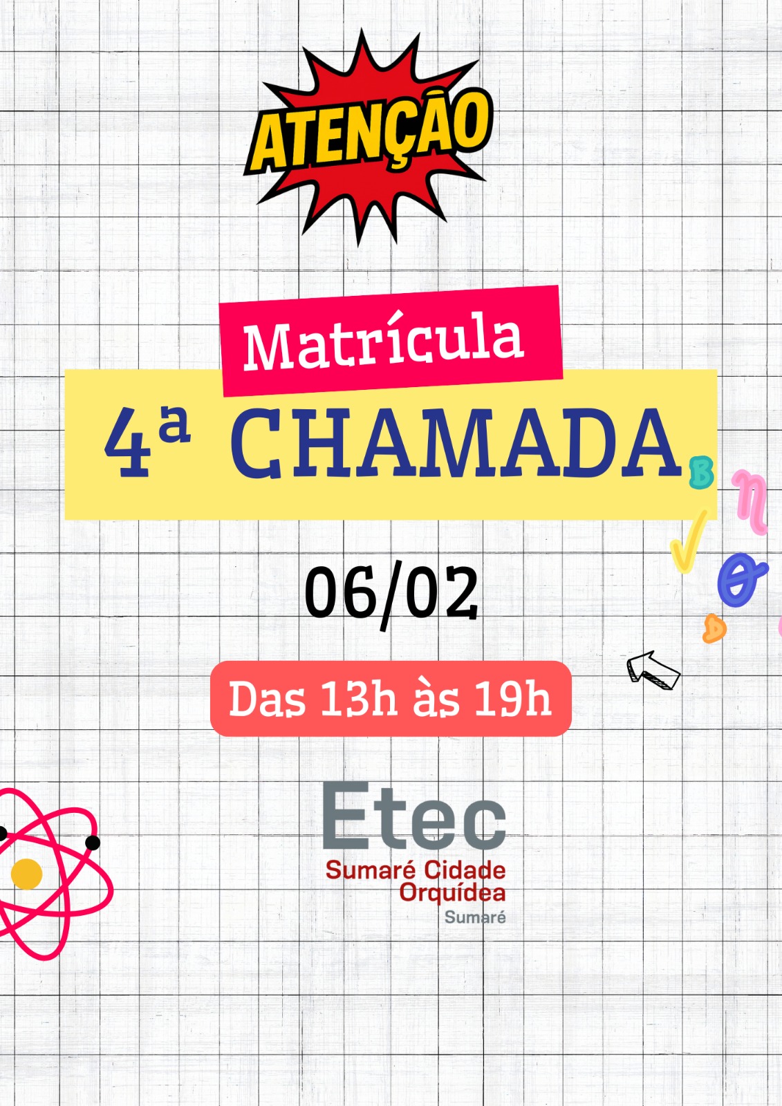 Datas: 06/02/2026 Horário: 13h as 19h Local: Etec Sumaré Cidade Orquídea Endereço: Rua Rafael Rossi, 197 – Jardim Luiz Cia, Sumaré – SP – CEP: 13175-270 Documentação necessária: Verifique no Manual do Candidato disponivel em: https://vestibulinho.etec.sp.gov.br/documentos/ páginas 22 a 25. Leia […]