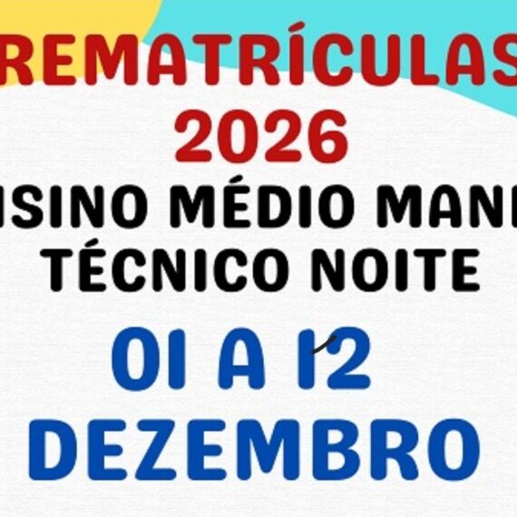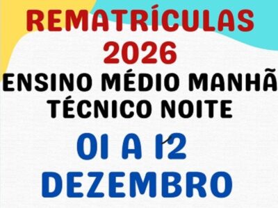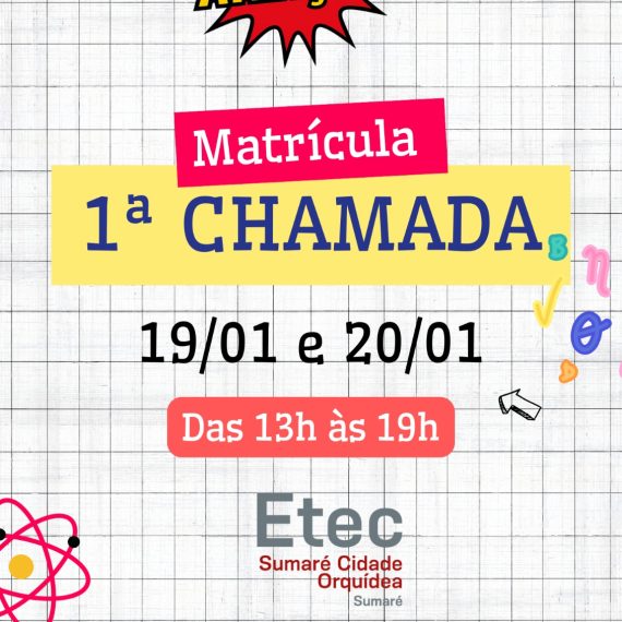 Matrícula 1ª Chamada para os alunos convocados. Datas: 19 e 20/01/2026 Horário: 13h as 19h Local: Etec Sumaré Cidade Orquídea Endereço: Rua Rafael Rossi, 197 – Jardim Luiz Cia, Sumaré – SP – CEP: 13175-270 […]