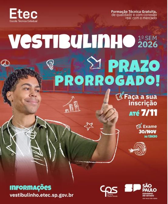 O seu futuro começa aqui! Estão abertas as inscrições para o Vestibulinho da Etec de Sumaré. Garanta sua vaga em uma formação técnica gratuita, de qualidade e com conexão real com o mercado de trabalho. […]